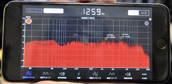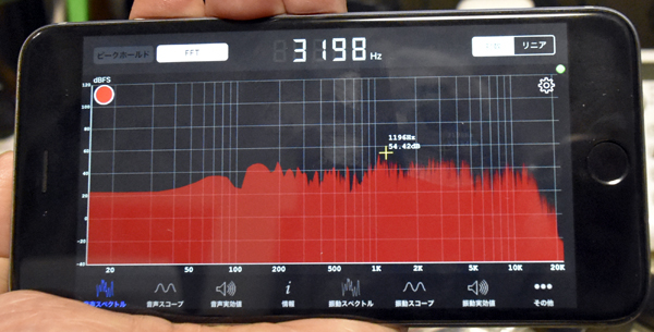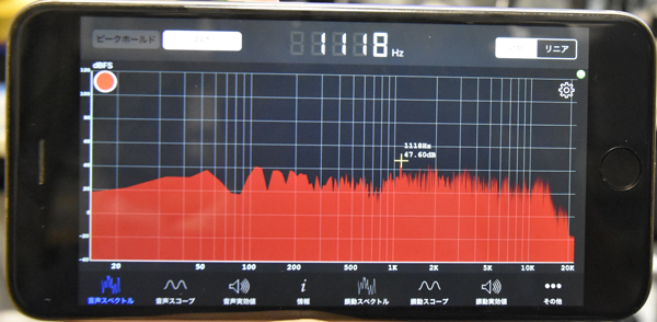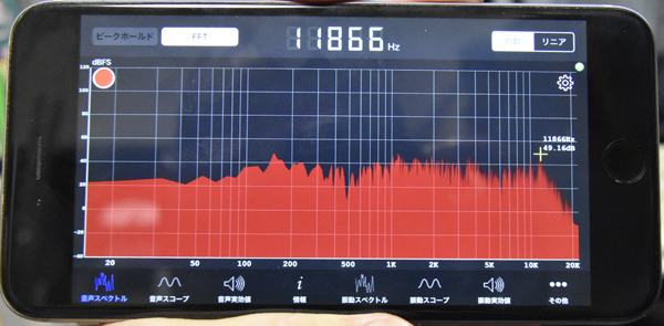 昔使っていた古いiPhoneに周波数特性を表示するアプリが入れてあるのを思い出した。