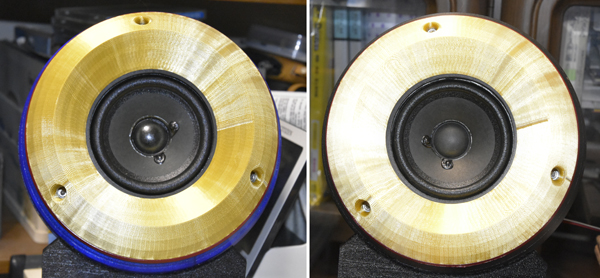 上段右の金色のホーン部だけはPLAフィラメントを使用した。PLAフィラメントは湿度に敏感なので取り扱い注意だ。